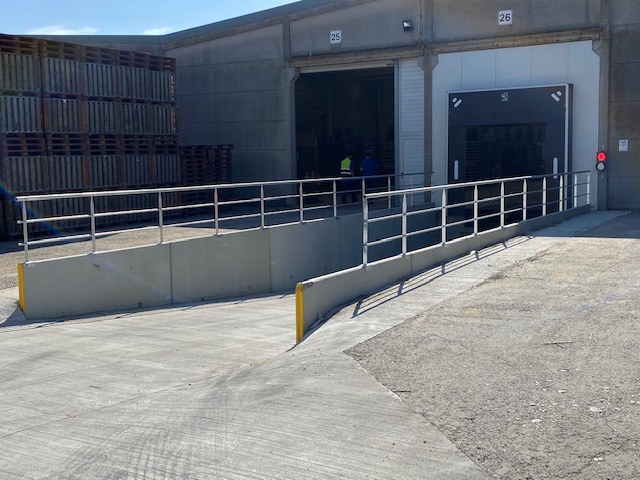 Om uw personeel en chauffeurs te beschermen tegen ongelukken, is het aangewezen een balustrade te plaatsen op het vlakke deel en het inrijvlak naar de laadkade.